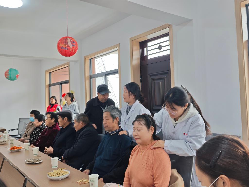 随后,渭南职业技术学院护理学院的师生们为长辈们献上了一场精彩纷呈的文艺演出。歌曲《世界赠予我》、诗朗诵《赞美夕阳、感恩亲情》、舞蹈《向快乐出发》等节目轮番上演,赢得了现场阵阵掌声。同学们还现场教学“养老手指操”,帮助老人们活动筋骨、促进健康,简单易学的动作深受欢迎。渭南职业技术学院护理学院专业教师郭宇森、马军峰坐镇义诊区,为老人们提供健康咨询与用药指导;按摩区的志愿者则耐心为长辈们进行肩颈放松,缓解疲劳。护理学院团总支副书记郭瑞、辅导员代表韩李鑫、杨璞典全程参与活动组织与志愿服务,确保活动有序开展。渭南市疾控中心的工作人员也为老人们带来了秋冬季流感预防与体重管理的健康知识宣传,并贴心地为每位老人送上小礼品。活动最后,全体志愿者与社区长者合影留念,记录下这温暖难忘的瞬间。