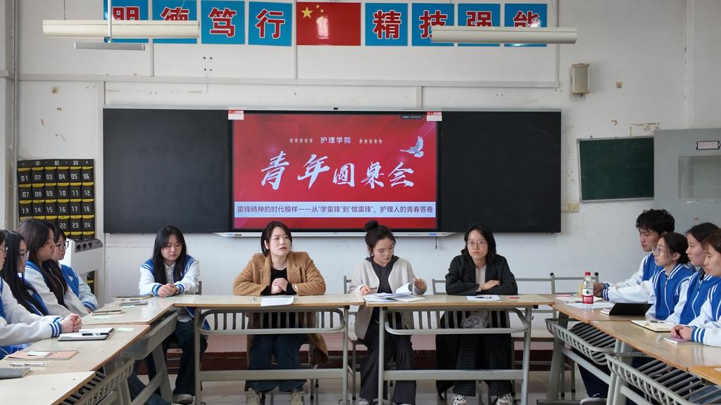 3月11日,护理学院第三期青年圆桌会在公共教学楼举行。本次活动以“雷锋精神的时代模样——从‘学雷锋’到‘做雷锋’,护理人的青春答卷”为主题,邀请青年教师王菲、张娜与学生代表围坐对话。护理学院团总支副书记郭瑞主持,各班级团支书、学生骨干代表参加。